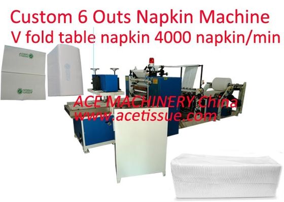 | Snelheid: | 4000 servetten per minuut | Productiecapaciteit: | 700 Servetten/minute/out * 4 Outs of 6 Outs |